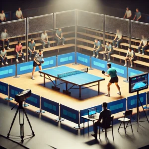 Turnieje rozgrywamy na małej sali w Gdańsku. Na sali znajduje się jeden profesjonalny stół do tenisa stołowego, kamera do transmisji na żywo, barierki oraz stanowisko sędziowskie.